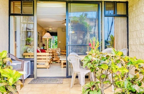 Kanai A Nalu, what a gorgeous beach front condo! It's a great remodel with tile flooring throughout, island-style furniture, and a stunning kitchen with a full-size front load W/D! All the comforts and conveniences of home, but it's in paradise! With 2 bedrooms, one with a king bed and en suite bath, the other with a queen bed, there is room for 6 guests. 2 Twin air mattresses available. The unit has TVs with complementary cable, high-speed internet, free WIFI, and AC in the living-room. Prep a gourmet meal in the kitchen to finish on the beach front grills then dine on your lanai, it has ocean views and being ground floor, you can step right onto the lawn and wander over to the heated pool or on down to the white sandy beach where you can sun, swim, snorkel and just play. Plus, there may be Hawaiian Sea Turtles snoozing there on the sand! | | Nearby are two really great places to explore: Sugar Beach, a serene 2.5 miles of white sandy shoreline that's undeveloped and has uninterrupted views. A 10-minute walk heading west takes you to the boat harbor which offers a variety of excursions (whale watches, snorkel adventures, sunset sails, etc.). Adjacent to the marina is a complex with various shops and restaurants, the Maui Aquarium and more. | | One vehicle per unit Free Parking. Centrally located with proximity to major roads you can easily venture forth from Kanai A Nalu with low commute times of 15 to 40 minutes to experience all that Maui has to offer: world-class golfing, wonderful hole-in-the wall eateries, fine dining restaurants, souvenir and high-end shops, next to a variety of gorgeous beaches ranked among the top in the world. Visit parks, take drives yourself or go on tours that showcase natural wonders; they are many and they are breathtaking. Maui no ka oi......